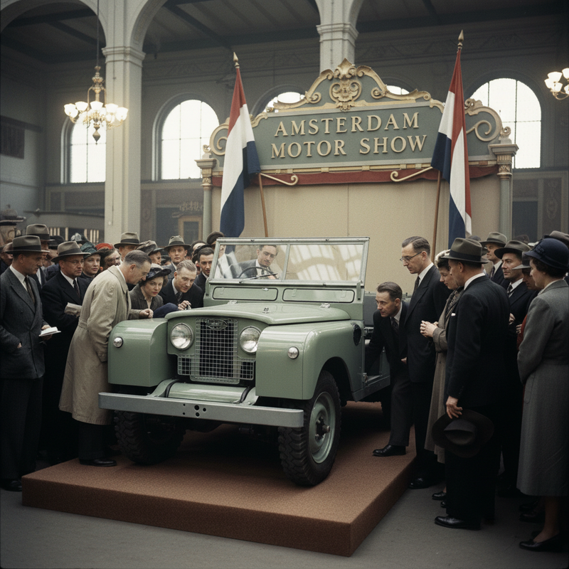 The first Land Rover made its public debut at the 1948 Amsterdam Motor Show, instantly capturing global attention. Its revolutionary design featured an aluminum body mounted on a robust ladder chassis, selectable four-wheel drive, and short overhangs for superior approach and departure angles.