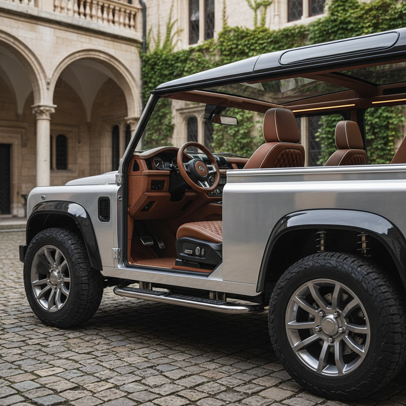 Luxury integration: Premium materials and custom craftsmanship create interiors that rival luxury automobiles while maintaining Defender authenticity.